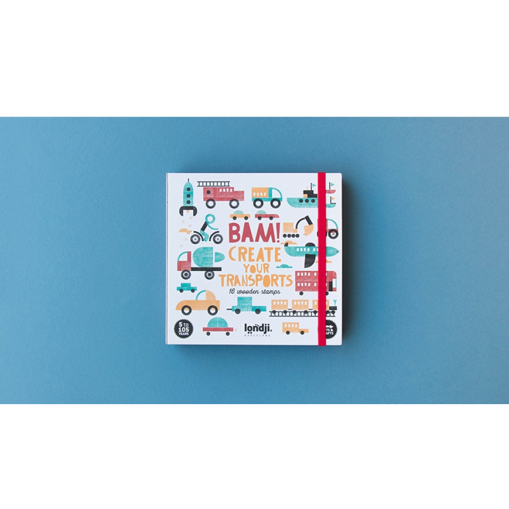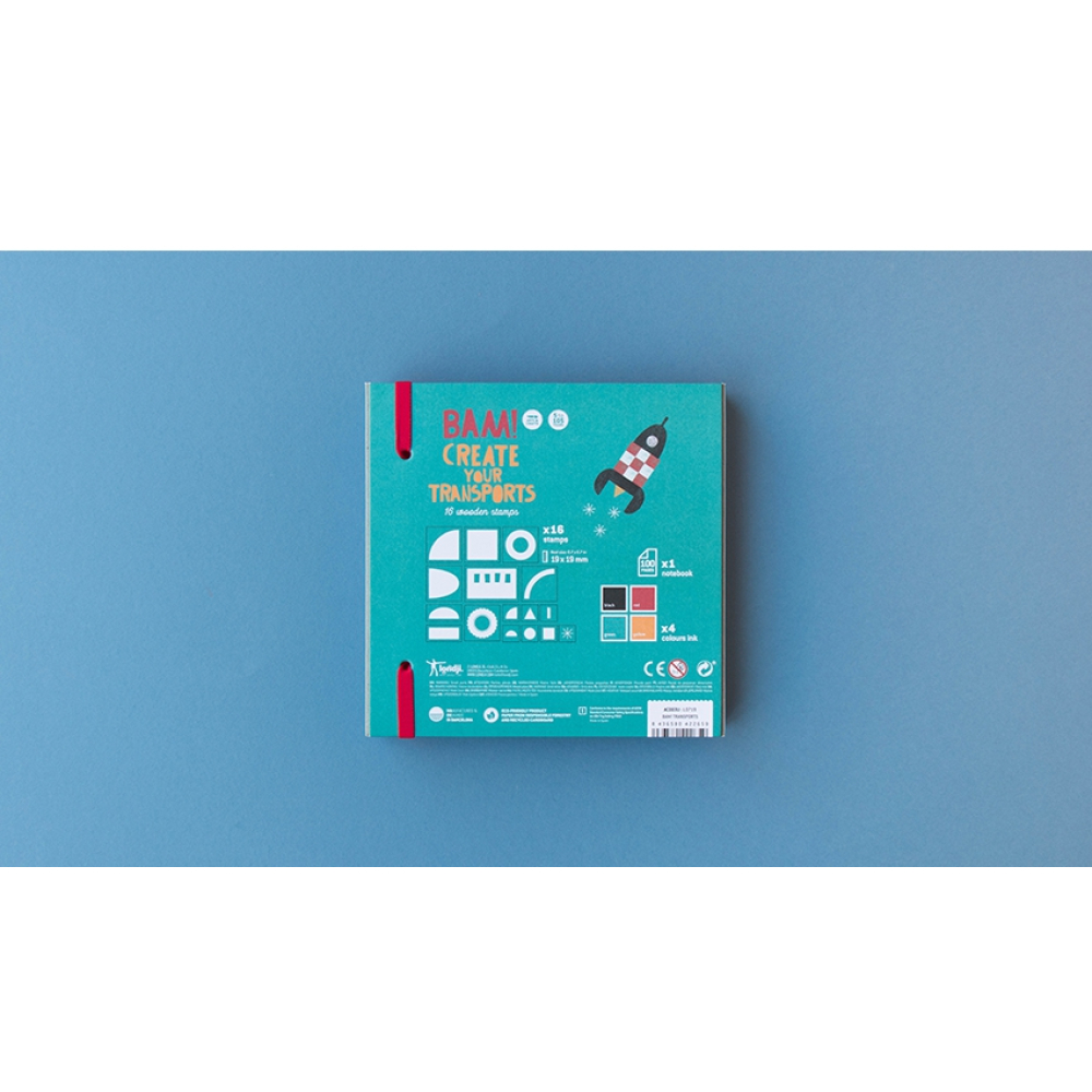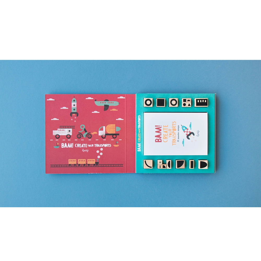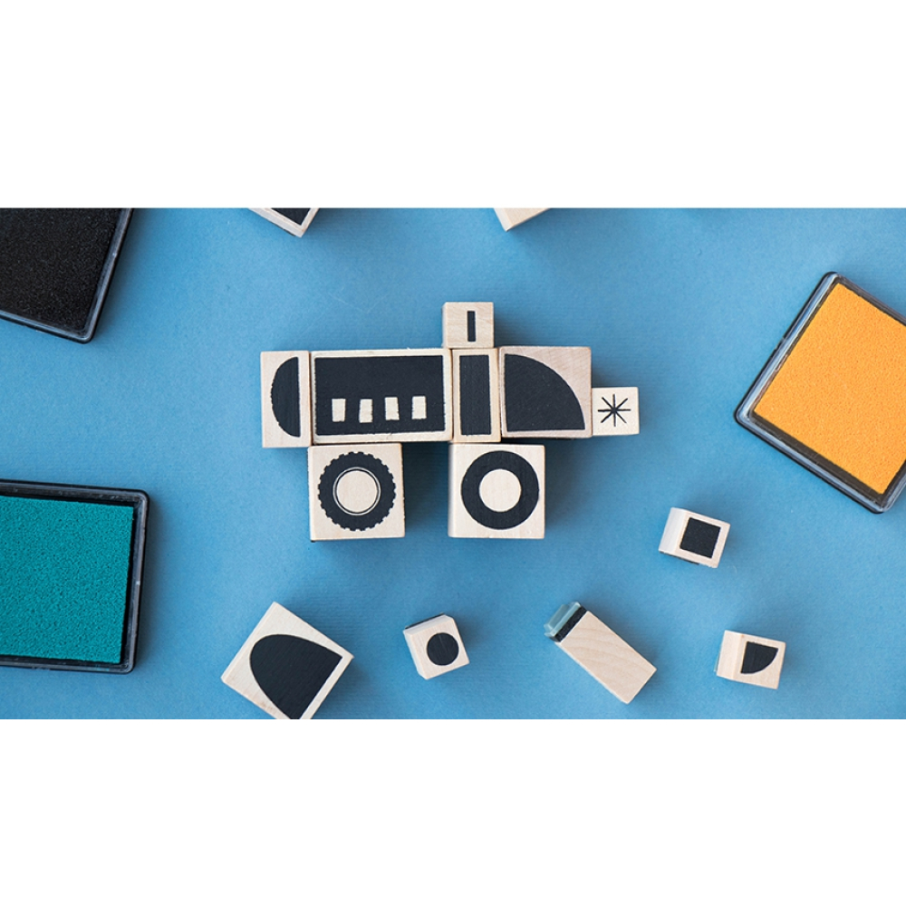 Met deze leuke stempels maak je zelf je eigen voertuigen. In de doos zitten 16 houten en rubberen stempels met afbeeldingen om je eigen creaties te maken. Wie maakt er een bus of een raket?