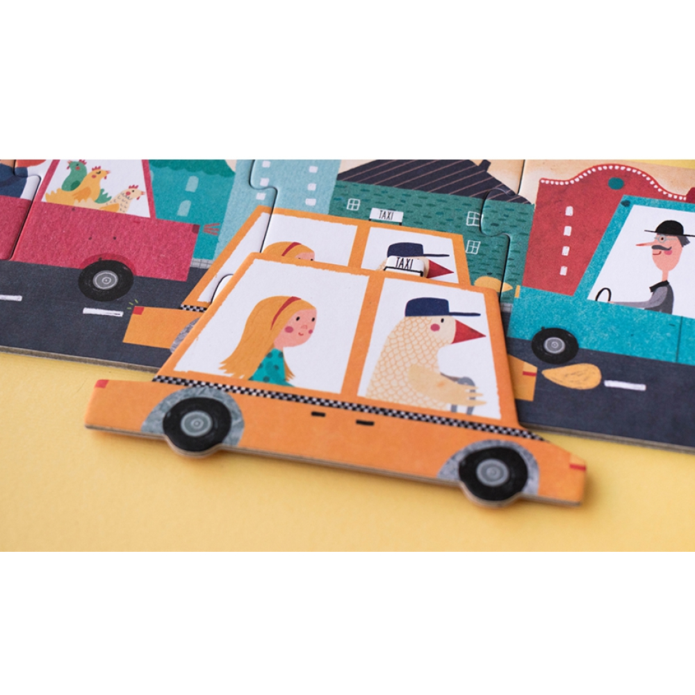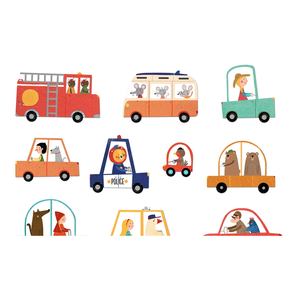 Een leuke en uitdagende puzzel met allemaal voertuigen.
