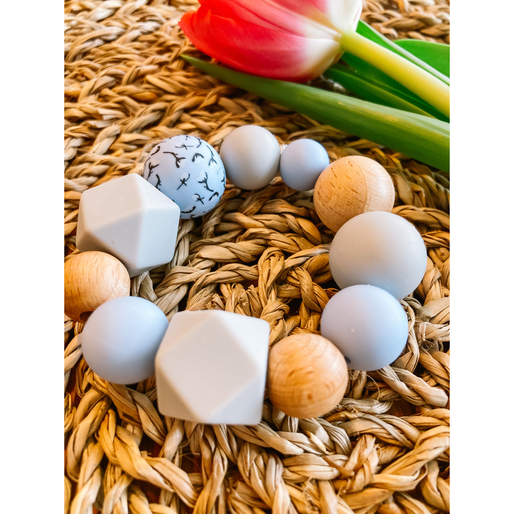 Bijtringen zijn ideaal voor wanneer tandjes doorkomen bij een baby'tje. Het is heel fijn om op te bijten en te sabberen én leuk om mee te spelen. De siliconen kralen zijn 100% BPA-vrij en de houten kralen zijn gemaakt van beukenhout.