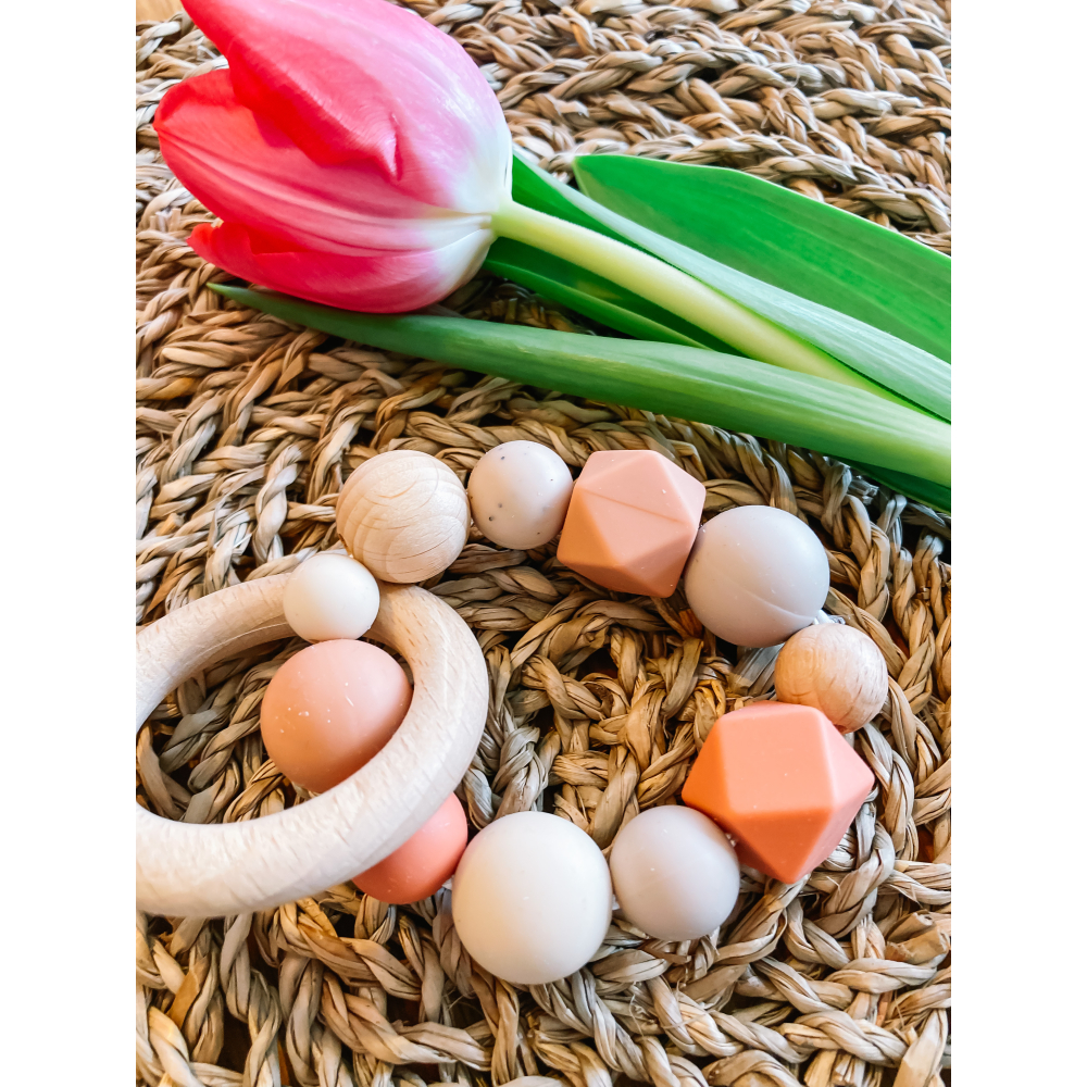 Bijtringen zijn ideaal voor wanneer tandjes doorkomen bij een baby'tje. Het is heel fijn om op te bijten en te sabberen én leuk om mee te spelen. De siliconen kralen zijn 100% BPA-vrij en de houten kralen zijn gemaakt van beukenhout.