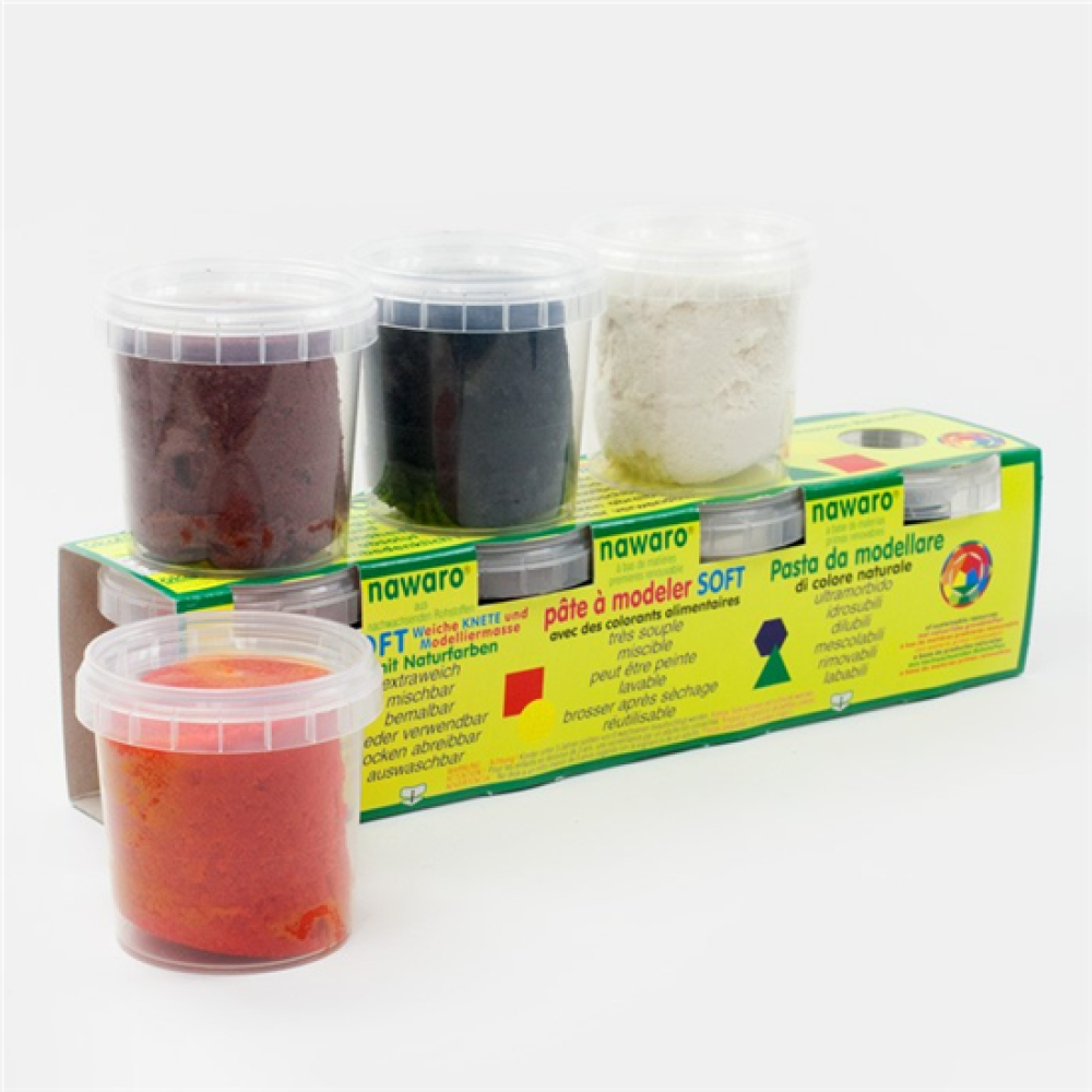 Met deze klei kan ieder kind zijn fantasie de vrije loop laten gaan. Deze set bestaat uit 4 kleuren (oranje, bruin, zwart en wit). Ze is gemaakt uit natuurlijke producten dus veilig voor kindjes.
