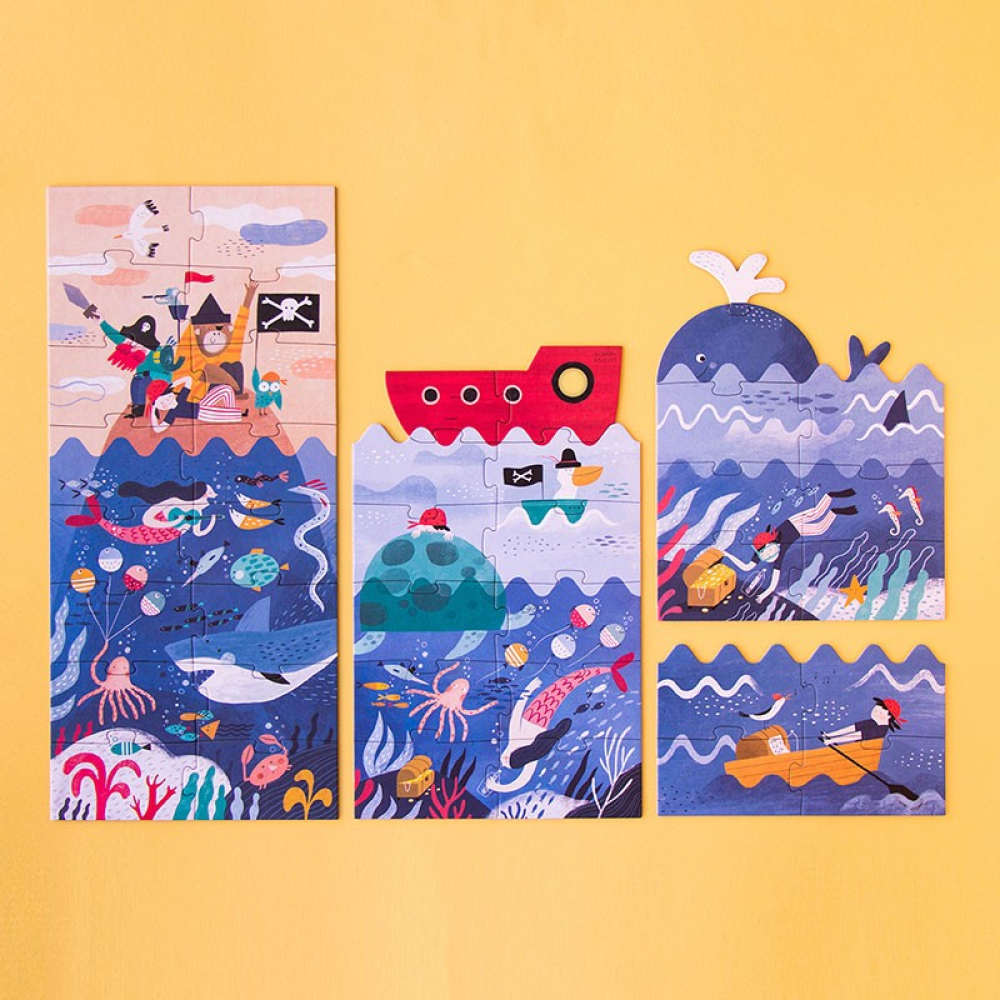 De "discover the treasure" puzzel van Londji is een avontuurlijke en uitdagende puzzel met een schatkaart-thema. De puzzel bestaat uit verschillende stukjes die samen een geheimzinnige schatkaart vormen, compleet met piratenschepen, eilanden en verborgen schatten. Een leuke en spannende puzzel voor kinderen om hun puzzelvaardigheden te testen en hun verbeelding te prikkelen.