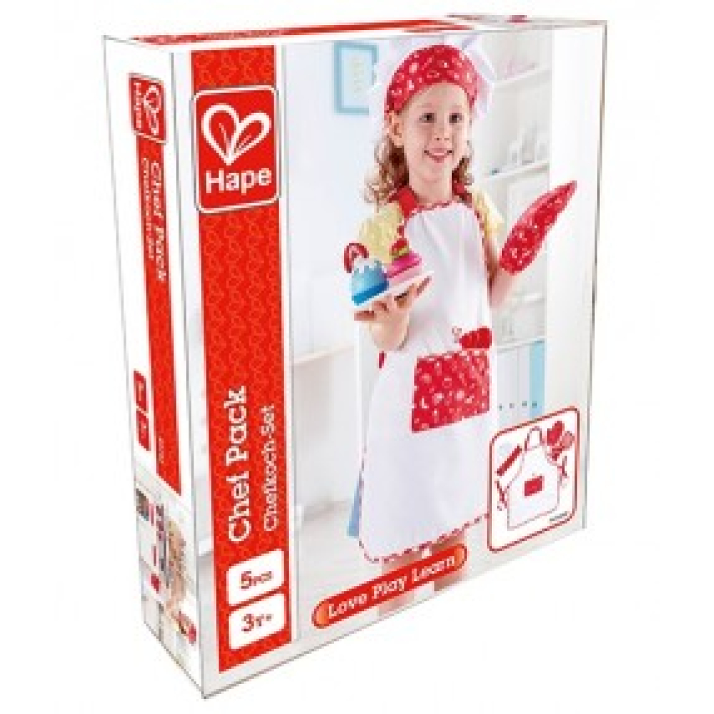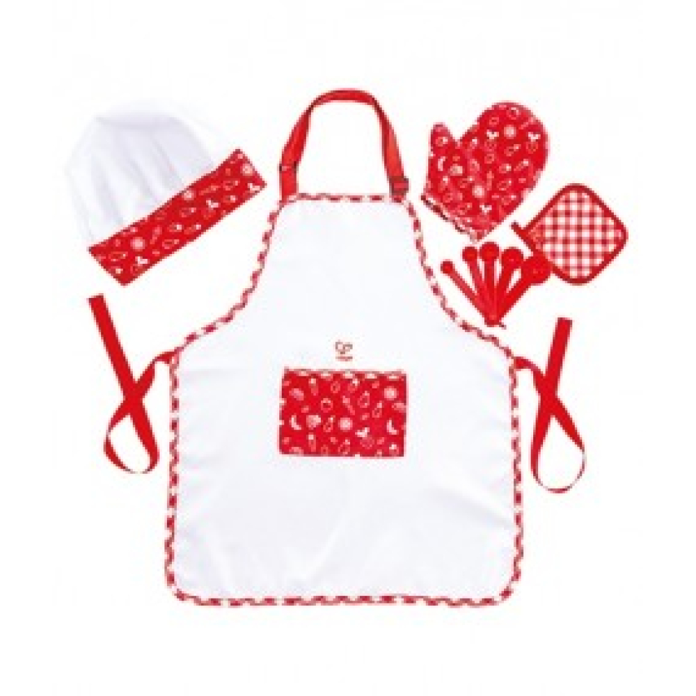 Zie eruit als een echte kok terwijl je heerlijke maaltijden bereidt met deze kokspeelset. Inclusief muts, schort, ovenwant, pannenlap en vijf maatschepjes.