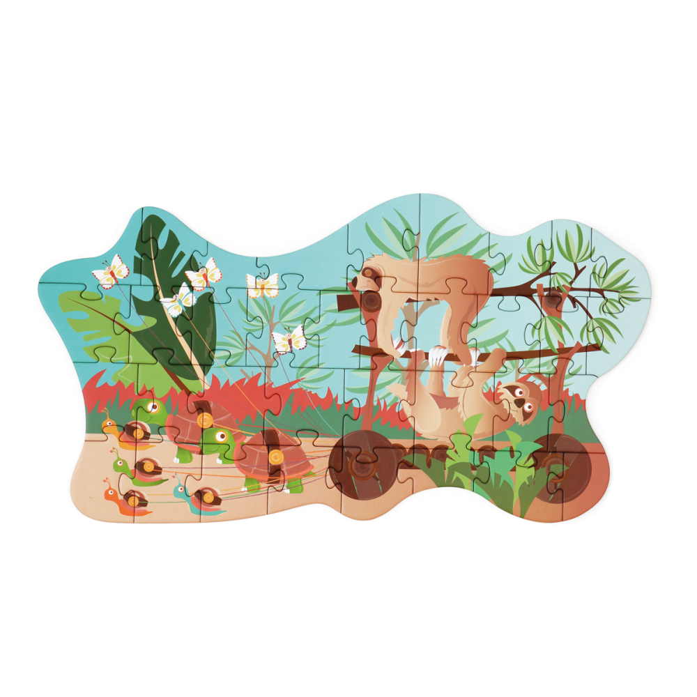 Weet jij welke dieren er allemaal geen haast hebben? Maak de puzzel en ontdek deze trage stoet van grappige dieren.