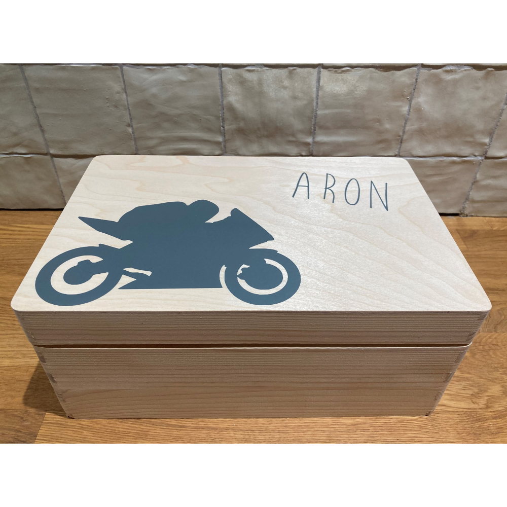 Deze mooie houten memorydoos kan gepersonaliseerd worden met een naam naar keuze. Zet bij de bestelling bij 'opmerking' welke naam en wij maken deze voor jou! Als je voor vinyl kiest, kan er ook een afbeelding bijgezet worden. Kan gepersonaliseerd worden zoals het geboortekaartje.
