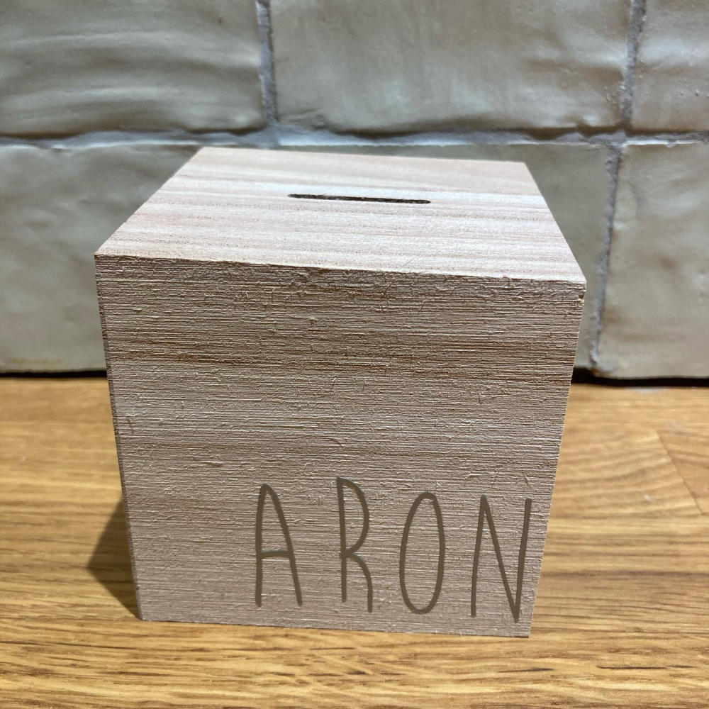Deze mooie houten spaarpot kan gepersonaliseerd worden met een naam of letter naar keuze. Zet bij de bestelling bij 'opmerking' welke letter of naam en wij maken deze voor jou!