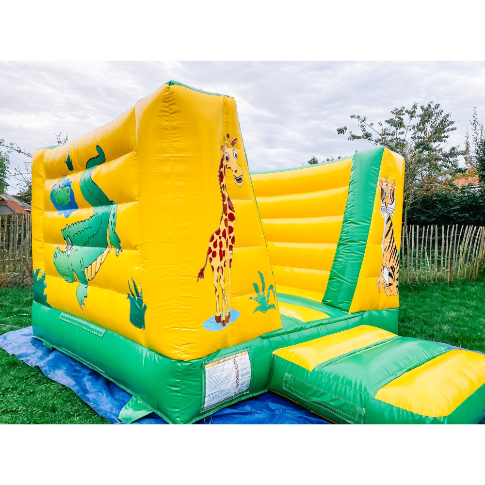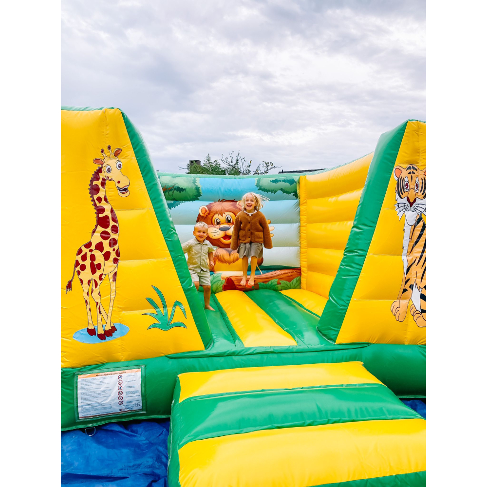 Afmetingen: 4,2 x 3,2 m (hoogte 2,35 m): Ideaal voor binnen of voor kleinere ruimtes. We hebben een geluidsbox om over de blower te zetten, zo wordt het geluid beperkt bij het binnen plaatsen van een springkasteel.